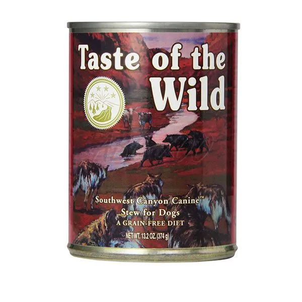TASTE OF THE WILD Southwest Canyon Canine je kompletné konzervované  krmivo určené pre všetky plemená psov, všetkých vekových kategórií. Krmivá tejto značky sú ocenené najvyšším možným hodnotením kvality organizácie Dog Food Analysis.