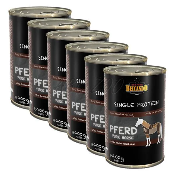 BELCANDO SINGLE PROTEIN - HORSE, je superprémiová konzerva s obsahom len 1 druhu mäsa - konského 6 x 400g.