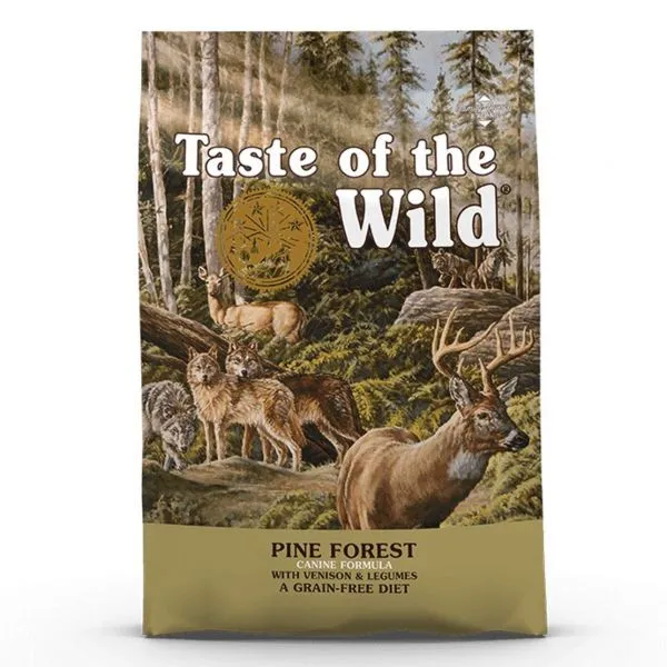 TASTE OF THE WILD Pine Forest je kompletné krmivo vo forme granúl, určené pre všetky vekové kategórie a veľkosti psov.  Krmivá tejto značky sú ocenené najvyšším možným hodnotením kvality organizácie Dog Food Analysis.