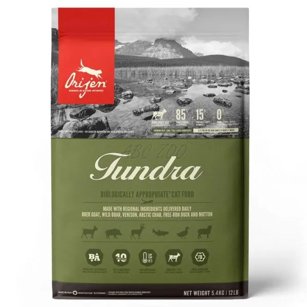 Orijen Tundra je krmivo z kozieho mäsa, diviaka, kačky, pre mačky všetkých plemien a všetkých vekových kategórií.