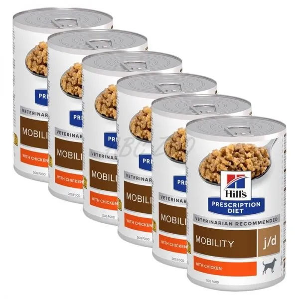 Hill's PRESCRIPTION DIET j/d krmivo pre psov s kuracím mäsom je kompletné diétne krmivo na podporu metabolizmu kĺbov pri osteoartróze a na podporu srdcovej činnosti pri chronickom srdcovom zlyhávaní dospelých psov. Toto krmivo má vysoký obsah EPA, celkových omega-3 mastných kyselín a primeraný obsah vitamínu E a obmedzený obsah sodíka.