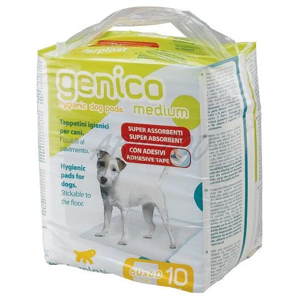 GENICO medium hygienické podložky obsahujú vysoko absorbčný materiál. Spodná strana podložky sa dá prilepiť k podlahe.