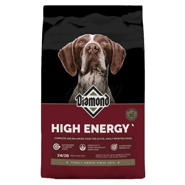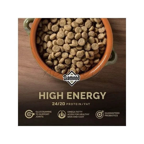 DIAMOND ORIGINAL Hi-Energy kompletná strava pre dospelých psov všetkých plemien. Špeciálne vyvinuté pre aktívne, športové, pracovné či lovecké psy.