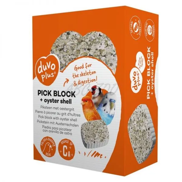 DUVO+ Blok je ideálnym zdrojom vápnika pre vtáky, ktorý pomáha udržiavať zdravé kosti a tiež obrusovať zobák a nechty.