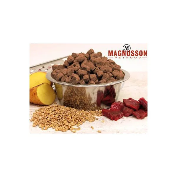 Magnusson Meat & Biscuit Adult je kompletné krmivo pre dospelých psov všetkých plemien s normálnou až vyššou aktivitou a mladých rastúcich psov veľkých plemien. Granule sú vyrobené čisto na prírodnej báze.