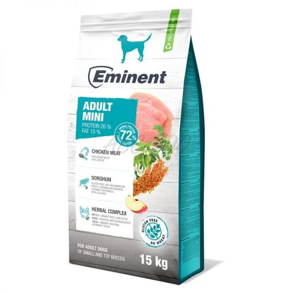 EMINENT Adult Mini je kompletným krmivom vyvinutým pre dospelých psov malých a trpasličích plemien s ohľadom na špecifické požiadavky vrátane vyššej aktivity.