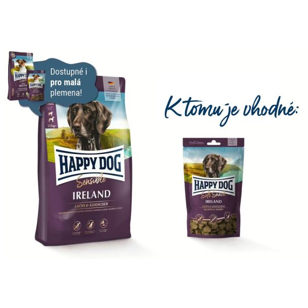 Happy Dog Sensible Ireland je perfektne vyvážené krmivo pre dospelé psy všetkých plemien, dosahujúcich v dospelosti hmotnosť nad 10 kg, obsahujúce 5 vysoko kvalitných zdrojov proteínov.