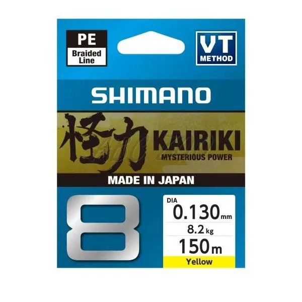 Inovovaná šnúra Shimano Kairiki 8 je splietaná z 8 nosných vlákien, vyrobených v Japonsku, pomocou novej techniky VT. Mimoriadnu pevnosť a hladkosť PE materiálu ocení pri odhadzovaní na veľké vzdialenosti snáď každý. Svoje vynikajúce vlastnosti uplatní v sladkovodnom i morskom prívlačovom rybolove. Je veľmi citlivá a úžasne hladká, čo tiež vedie k zníženiu šumu. Vďaka hladkému povrchu, malému priemeru a tým aj malému odporu pri pohybe vo vode je Kairiki 8 skvelou voľbou pre jiggingové techniky lovu. Vďaka nízkej prieťažnosti (pod 3,0% dĺžky) je tiež veľmi citlivá.