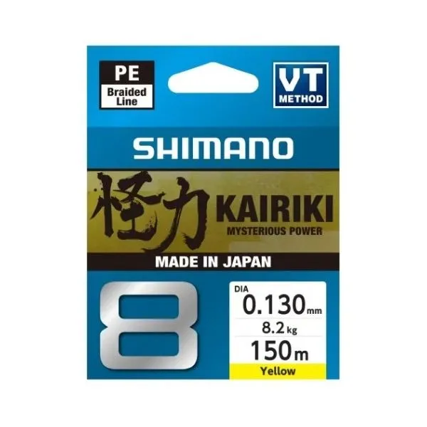 Inovovaná šnúra Shimano Kairiki 8 je splietaná z 8 nosných vlákien, vyrobených v Japonsku, pomocou novej techniky VT. Mimoriadnu pevnosť a hladkosť PE materiálu ocení pri odhadzovaní na veľké vzdialenosti snáď každý. Svoje vynikajúce vlastnosti uplatní v sladkovodnom i morskom prívlačovom rybolove. Je veľmi citlivá a úžasne hladká, čo tiež vedie k zníženiu šumu. Vďaka hladkému povrchu, malému priemeru a tým aj malému odporu pri pohybe vo vode je Kairiki 8 skvelou voľbou pre jiggingové techniky lovu. Vďaka nízkej prieťažnosti (pod 3,0% dĺžky) je tiež veľmi citlivá.