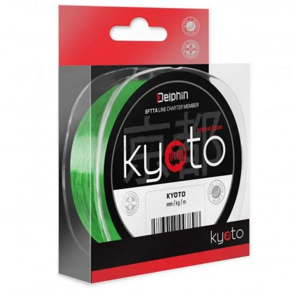 KYOTO patrí do najvyššej triedy Delphin vlascov, vyrobených v Japonsku. Jeho mimoriadnu oderuvzdornosť a extrémne nízku prieťažnosť využijete v najťažších terénoch, kde je potrebná okamžitá reakcia na najjemnejší záber. Je jednoznačne vhodný pre ultraľahkú prívlač a feeder. Jeho vlastnosti v tenších priemeroch využijete aj pri zhotovovaní muškárskych nadväzcov... KYOTO je skrátka vynikajúci vlasec takmer pre všetky rybolovné techniky, kde je na prvom mieste nízka prieťažnosť vlasca. Dokážete tak bleskurýchlo reagovať na všetky opatrné zábery. Kyoto je postavený na stredne tvrdom jadre s tvrdou a hladkou povrchovou úpravou. Kombinácia týchto dvoch vlastností z neho robí ideálny vlasec, pokiaľ potrebujete málo prieťažný monofil s výbornou uzlovou pevnosťou, ktorý odoláva povrchovému mechanickému poškodeniu.