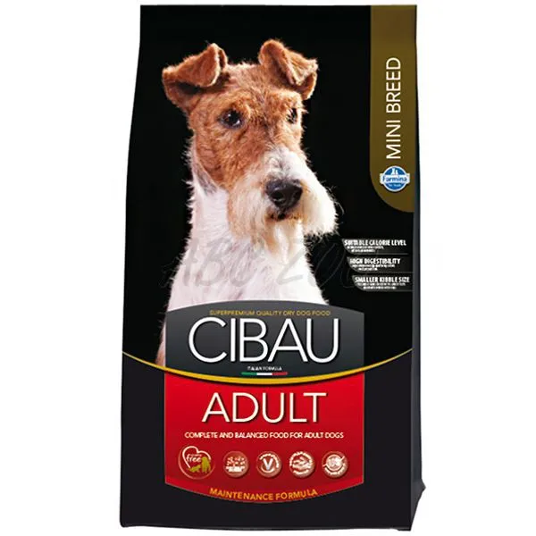 Cibau Adult Mini je kompletné krmivo pre dospelé psy malých plemien s bežnou mierou fyzickej aktivity. Krmivo Cibau Adult Mini obsahuje malé granuly pre lepšie prežúvanie a tie najkvalitnejšie suroviny, ktoré vášmu psovi poskytnú kompletnú a vyváženú výživu. Obsahuje kuracie mäso ako prísun kvalitných bielkovín, ryžu a kukuricu ako zdroj energie vo forme uhľohydrátov. Repná dužina ako zdroj vlákniny napomáha správnej peristaltike. Kurací tuk pre chutnosť produktu je zároveň kvalitným zdrojom energie. Rybí tuk a rastlinný olej zabezpečujú