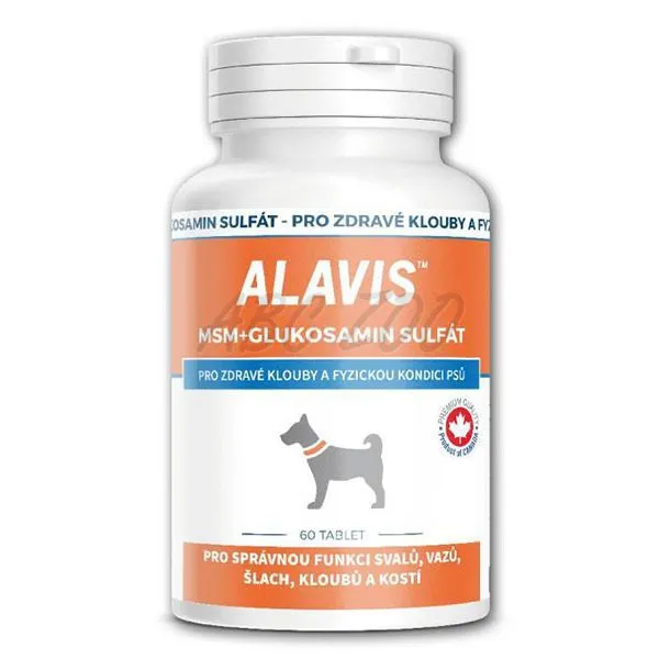 ALAVIS MSM Glukosamin sulfát - Pre správnu funkciu väzov, šliach, kĺbov a kostí. Vhodné najmä na podávanie mladým psom a psom malých plemien, 60tbl.