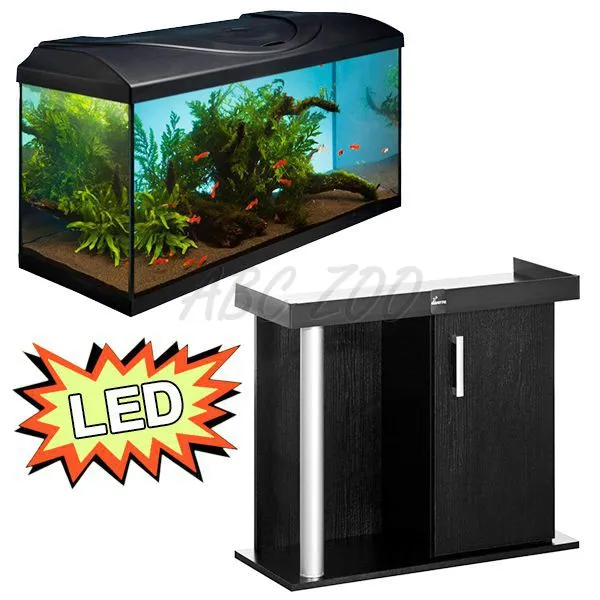 Akvárium o objeme 112 l s rovným čelným sklom. Súčasťou dodávky je aj akvarijný stolík, farebné prevedenie: čierne, o rozmeroch 80*35*67 cm.