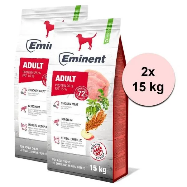 Eminent Adult je kompletné bezlepkové krmivo pre dospelých psov malých a stredných plemien