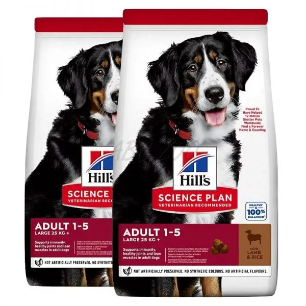 Veľké psy majú špecifické nutričné potreby, preto má Hill's Science Plan krmivo pre dospelých psov veľkých plemien s jahňacím a ryžou špeciálne zloženie pre naplnenie energetických potrieb psov veľkých plemien behom najlepších rokov života. Toto krmivo pre veľkých dospelých psov je vyrobené z vysoko kvalitných, ľahko stráviteľných ingrediencií, obsahuje vysoko kvalitné bielkoviny pre tvorbu svalovej hmoty, ďalej glukosamín a chondroitín pre zdravé kĺby a mobilitu. Vyvážená zmes omega-6 a vitamínu E vyživuje kožu pre zdravú a lesklú srsť.