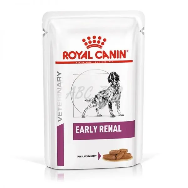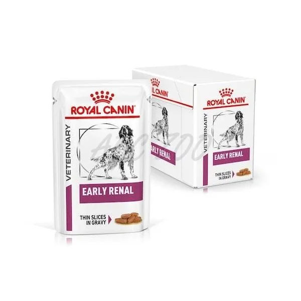 ROYAL CANIN® Early Renal tenké kúsky v šťave je kompletné diétne krmivo pre psy formulované na podporu obličkovej funkcie v prípadoch chronickej renálnej nedostatočnosti.