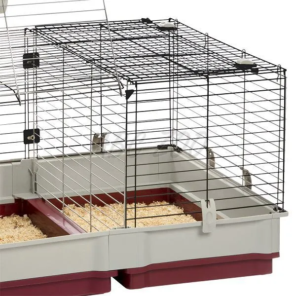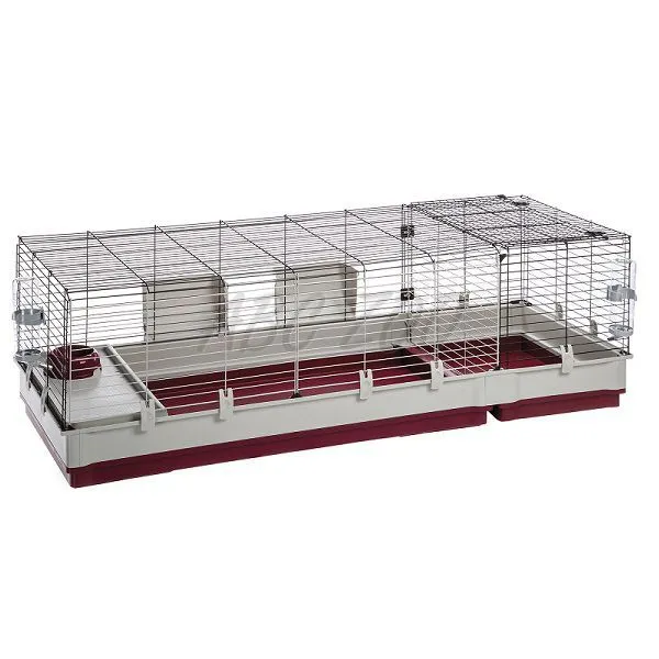 Klietka obsahuje: misku, 2 x senník, napájačku, plošinu.