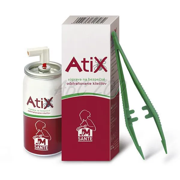 Atix súprava na odstraňovanie kliešťov je určená na postriekanie kože proti parazitickým kliešťom. Vyvolaním silného kryogénneho účinku spôsobí okamžité a účinné zníženie metabolickej aktivity kliešťa (zmrazenie), ktoré obmedzí a zabráni prenosu telesných tekutín parazita, ktoré môžu obsahovať patogénne mikroorganizmy, do organizmu hostiteľa. Jednoduchá aplikácia umožňuje rýchle a bezpečné odstránenie kliešťov spolu s jeho ústnym ústrojenstvom.