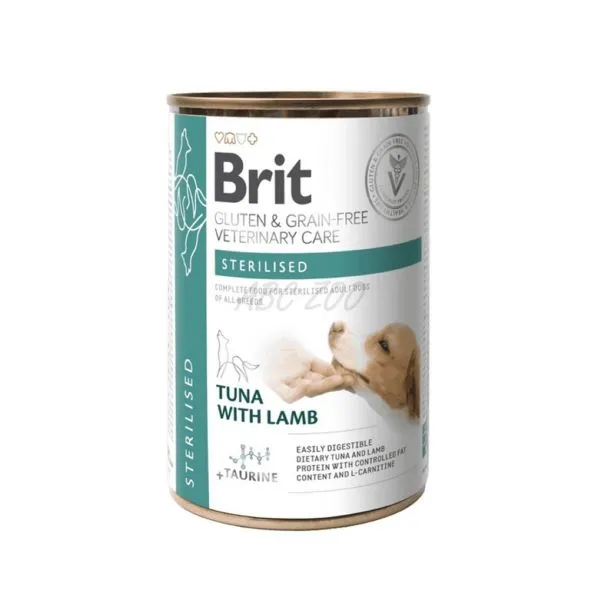 Brit Veterinary Diets Sterilised je mäsová konzerva s tuniakom a jahňacím mäsom, pre kastrované dospelé psy všetkých plemien.
