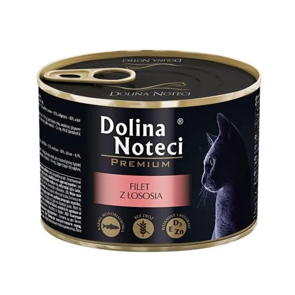 Dolina Noteci Premium je kompletné vlhké krmivo bez obilnín, s lososom pre dospelé mačky všetkých plemien.