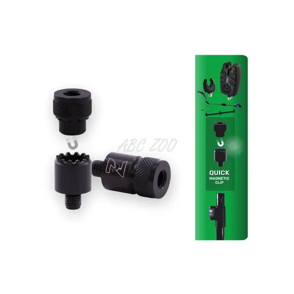 Jedinečná a dômyselná rýchlospojka, ktorá funguje pomocou EXTRA silného magnetu a špeciálneho tvaru spojky, ktorý presne pasuje a zaručuje, že sa časti rýchlospojky neotáčajú a nerozpojia ani pri prudkom zatočení do strany. Detektor jednoducho naskrutkujte do hornej časti rýchlospojky a spodnú časť upevnite klasicky na stojan alebo vidlicu a je to. Keď skončíte s lovom, jednoducho odpojte a jednotlivé časti nechajte na hlásiči aj na stojane/vidlici. Pri ďalšej výprave ho jednoducho znovu pripevnite a ste ušetrení otravného a zdĺhavého skrutkovania. Spojka je celokovová, kvalitne vyrobená s matnou čiernou povrchovou úpravou. Štandardné závity sú vhodné pre väčšinu bežných rybárskych stojanov a vidličiek.