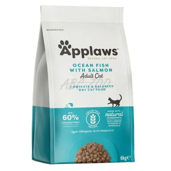 Applaws je kompletné 100% prírodné hypoalergénne krmivo pre dospelé mačky, ktoré obsahuje minimálne 50% morských rýb a lososa, zeleninu a prírodné extrakty.