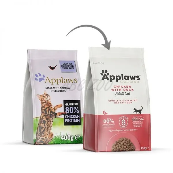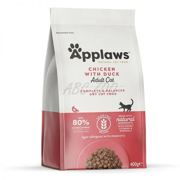 Applaws Cat Adult Chicken & Duck je kompletné prirodzene hypoalergénne krmivo pre dospelé mačky  bez obsahu obilnín, obsahuje až 80 % živočíšnych bielkovín.
