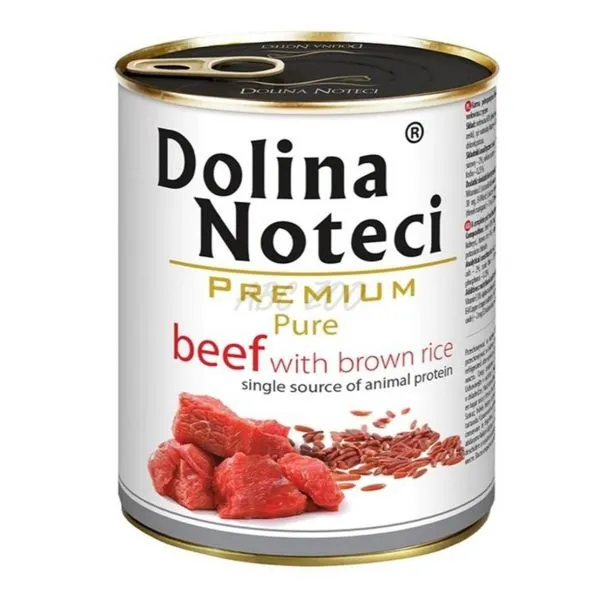 Dolina Noteci Premium Pure je monoproteínové mokré krmivo s hovädzím mäsom a hnedou ryžou pre dospelé psy všetkých plemien.
