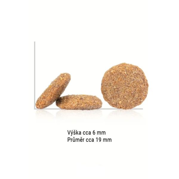 Analytické zložky: Hrubý proteín 24%, Hrubý tuk 7,5%, Vláknina 3%, Popol 6,5%, Vápnik 1,45%, Fosfor 0,95%, Sodík 0,4%, Omega 3 mastné kyseliny 0,3%, Omega 6 mastné kyseliny 2,2%