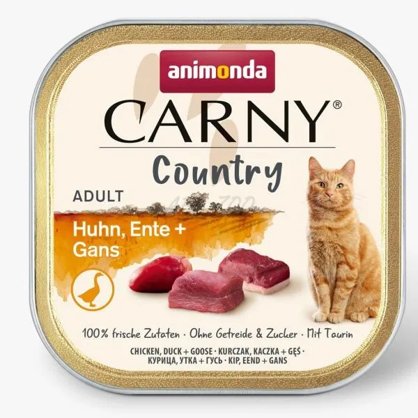 Animonda Country je kompletné vlhké krmivo s kuracím, kačacím a husacím mäsom, pre dospelé mačky (od 1 do 6 rokov) všetkých plemien.