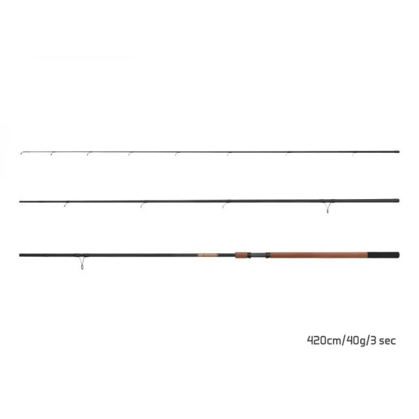 Ide o veľmi elegantný prút navrhnutý v čierno hnedej farbe, typickej pre túto radu. Napriek svojej cenovke je schopný kvalitou preskočiť aj prúty z vyšších cenových poschodí. Matný štruktúrovaný blank s parabolickou akciou v sebe ukrýva dostatok sily nato, aby si poradil aj s väčšími rybami, vďaka ktorým plaváčik zmizne pod vodnou hladinou. Blank spolu s presným rozmiestnením odľahčených očiek garantujú dokonalé tlmenie výpadov zdolávaných rýb, čo je pri tejto jemnej technike kľúčovým faktorom úspechu. Masívna rukoväť prúta je vyrobená kompletne z dvoch typov EVA peny- hnedej a na konci čiernej farby. Vďaka tomu sa počas lovu veľmi prijemné drží a uľahčuje manipuláciu s prútom. Decentná čierna grafika dotvára podarený vizuál tohto prútu, v ktorom rozhodne nájdete vynikajúci pomer ceny a výkonu.