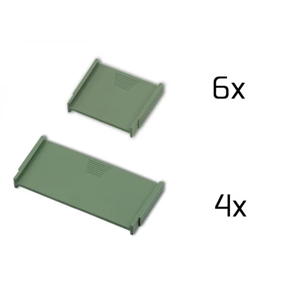 Box v základe disponuje až šiestimi plastovými krabičkami, pričom každá z nich ma rozdielne usporiadanie vnútorných priehradiek. Takéto prevedenie umožňuje uloženie malých komponentov montáže presne podľa vašich predstáv.