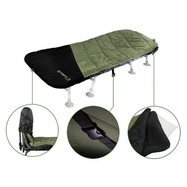 Spací vak, ktorý vám zabezpečí maximálny tepelný komfort počas studených nocí na vašich rybárskych výpravách. Vonkajšia vrstva je vyrobená z odolného materiálu v zeleno-čiernej farebnej kombinácii s efektným šikmým prešívaním.