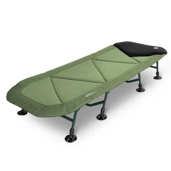 Komfortné osemnohé lehátko, pri ktorom sa skĺbil excelentný pomer pohodlia, funkčnosti a priaznivej obstarávacej ceny. Jeho základom je veľmi pevná, odolná a zároveň ľahká konštrukcia zelenej farby, ktorá spolu s ôsmimi nohami dodáva lehátku potrebnú stabilitu. Výškovo nastaviteľné nohy sú na koncoch opatrené robustnými pätkami na guľových čapoch, čo im umožňuje prispôsobiť sa nerovnostiam terénu. Pár nôh pod hlavou je navyše opatrený zaisťovacím mechanizmom, čo uľahčuje rozloženie lehátka a zároveň zabraňuje neželanému sklápaniu, či posunu. Matrac je z vrchnej časti tvorený fleecovým materiálom s efektným prešívaním, čím je veľmi pohodlný, hrejivý a dizajnovo originálny. Okrem toho je po obvode opatrený odolnou 600D látkou zelenej farby, ktorá prispieva k predĺženiu životnosti produktu. Pre maximálne pohodlie je vo vrchnej, hlavovej časti extra polstrovaný fleecový panel. Tuhosť matraca je možné nastaviť v časti nôh a hlavy dotiahnutím pevného lana, ktoré je vedené spodnými okrajmi. Pokiaľ teda hľadáte pohodlné lehátko za rozumnú cenu, určite by ste sa mali obhliadnuť práve po modeli EazyEIGHT8.
