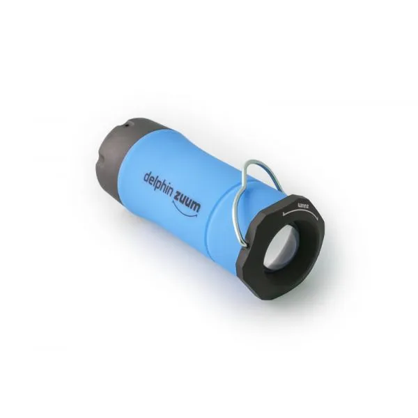 Príručné svietidlo, bez ktorého sa odteraz nezaobíde žiadna vaša rybačka. Delphin ZUUM je vďaka kompaktným rozmerom ľahko prenosný a vďaka svojej multifunkcionalite priam nenahraditeľný spoločník za zhoršených svetelných podmienok. Je ho možné použiť ako klasické svietidlo do ruky, kedy lúč svetla svieti priamym smerom z otočnej hlavice. Po jej otočení je ale možné povytiahnuť stredovú časť a urobiť tak z baterky lampáš. Tento lampáš je samostojaci, no vďaka profilovanému drôtenému háčiku je ho možné bez problémov zavesiť. Tým výpočet vlastností stále nekončí. Samotná LED dióda vo vnútri má tri úrovne svietenia: silné svetlo, tlmené svetlo a blikajúci stroboskop. Možnosti Delphin ZUUM sú teda nekonečné, od klasického ručného svietidla, cez závesný lampáš, svetlo do bivaku, pozičné svetlo... ZUUM je ponúkaný v 3 farebných prevedeniach tela: zelená, oranžová a modrá.
