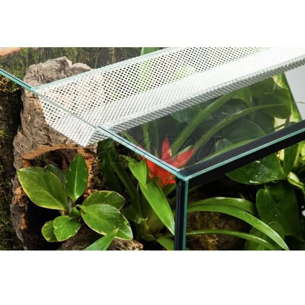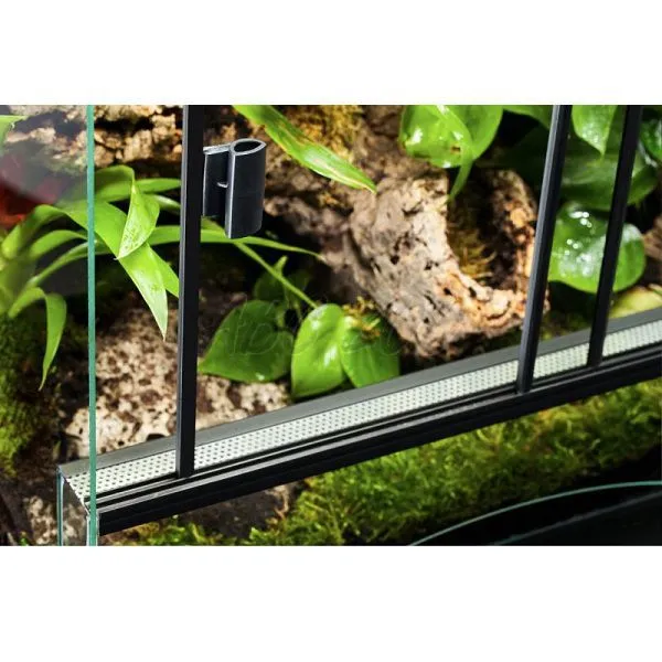 • Terárium s ventilačným systémom a veľkými dvierkami, ktoré sa dajú posúvať jednoducho na plastovej koľajničke. Perforovaný plech z hliníka zaisťuje vetranie z prednej a vrchnej časti, a tým zamedzuje prechladnutiu Vášho miláčika, priemer otvoru je cca. 1,5mm.