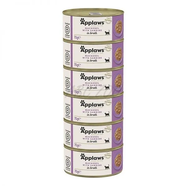 Applaws Konzerva pre mačky s makrelou a sardinkou vo vývare 6 x 70 g