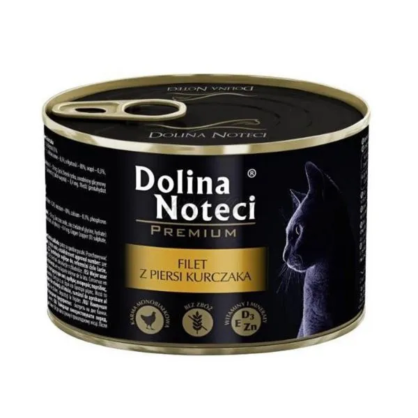 Dolina Noteci Premium je kompletné vlhké krmivo bez obilnín, s kuracím mäsom pre dospelé mačky všetkých plemien.