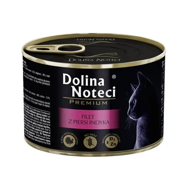 Dolina Noteci Premium je kompletné vlhké krmivo bez obilnín, s morčacím mäsom pre dospelé mačky všetkých plemien.