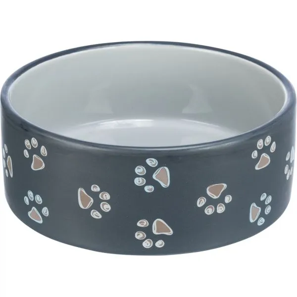 Keramické miska tmavosivej farby na krmivo alebo vodu. Viac detailov
