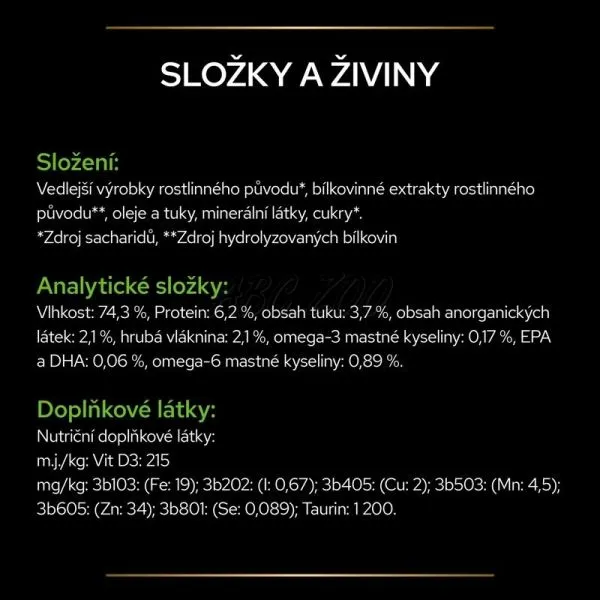 Zloženie: Vedľajšie produkty rastlinného pôvodu*, Rastlinné bielkovinové koncentráty**, Oleje a tuky, Minerálne látky, Cukry*