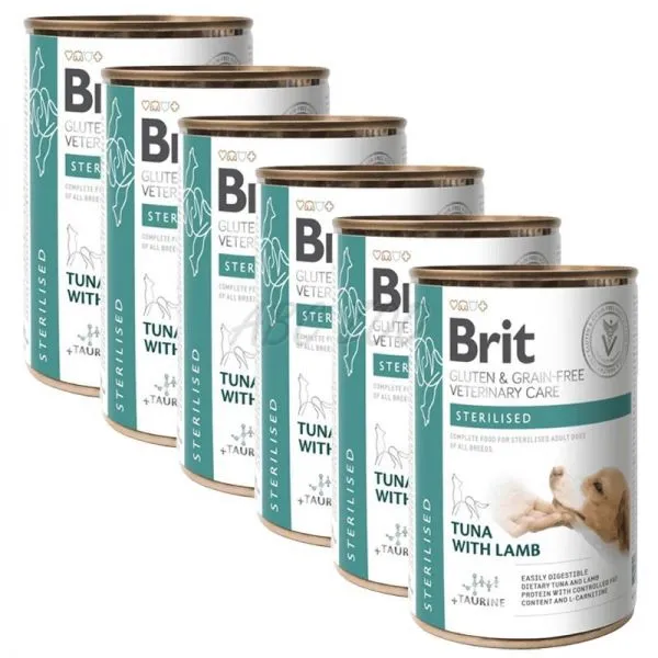 Brit Veterinary Diets Sterilised je mäsová konzerva s tuniakom a jahňacím mäsom, pre kastrované dospelé psy všetkých plemien.