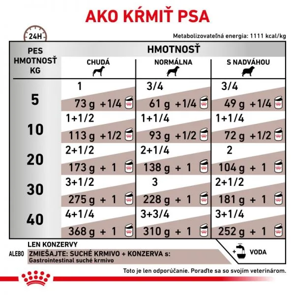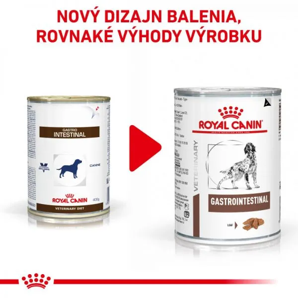 Špeciálna veterinárna diéta v podobe konzervovanej stravy pre dospelé psy trpiace ochorením tráviaceho traktu.