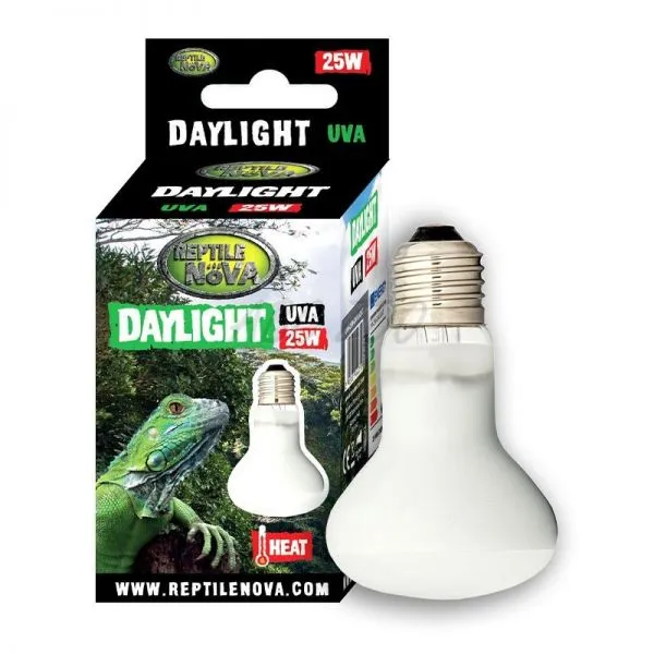 Výhrevná žiarovka Daylight  UVA 25 W zabezpečuje rovnomerné rozloženie tepla v teráriu.