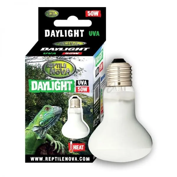 Výhrevná žiarovka Daylight  UVA 50 W zabezpečuje rovnomerné rozloženie tepla v teráriu.