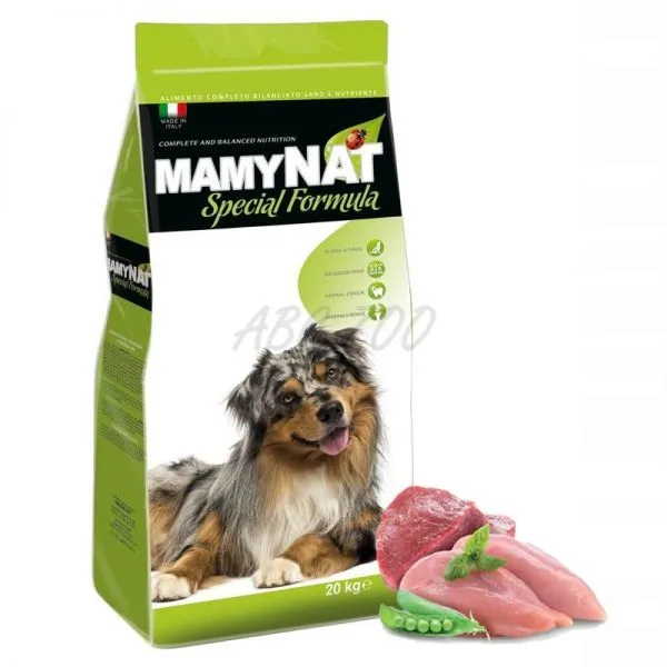 Mamynat je kompletný a vyvážený rad krmív pre vášho psa vyvíjaný vo vlastných laboratóriách s vynikajúcou kvalitou mäsa, dobrým pomerom medzi bielkovinami a tukmi, a medzi vitamínmi a minerálmi.