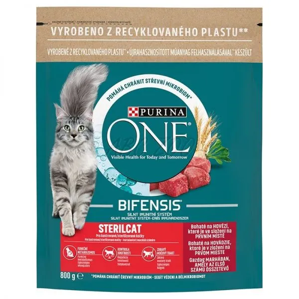 Krmivo Purina ONE Sterilcat s hovädzím bolo špeciálne prispôsobené požiadavkám sterilizovaných a kastrovaných mačiek, ktoré majú často sklony k nadváhe a k ochoreniam močových ciest. Purina ONE Sterilcat bolo špeciálne prispôsobené požiadavkám týchto mačiek- s vyváženou zmesou minerálnych látok je Ph v moči stále pod kontrolou.