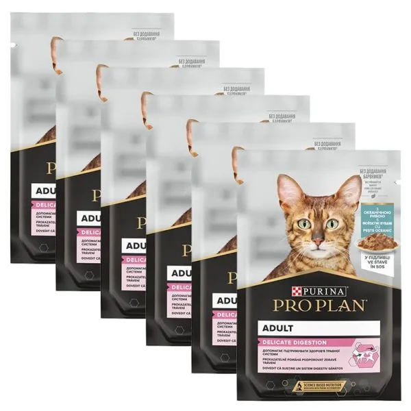 PRO PLAN Delicate Digestion kapsička pre mačky morské ryby v šťave 6x85 g