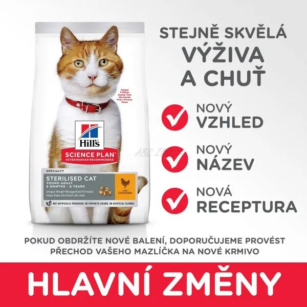Hill\'s Science Plan Sterilised Cat krmivo pre mladé dospelé mačky s kuraťom.