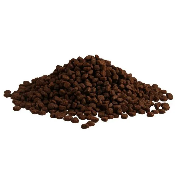 • Čerstvé kuracie mäso a pečeňový obal na povrchu granúl garantujú výnimočnú chuť krmiva
